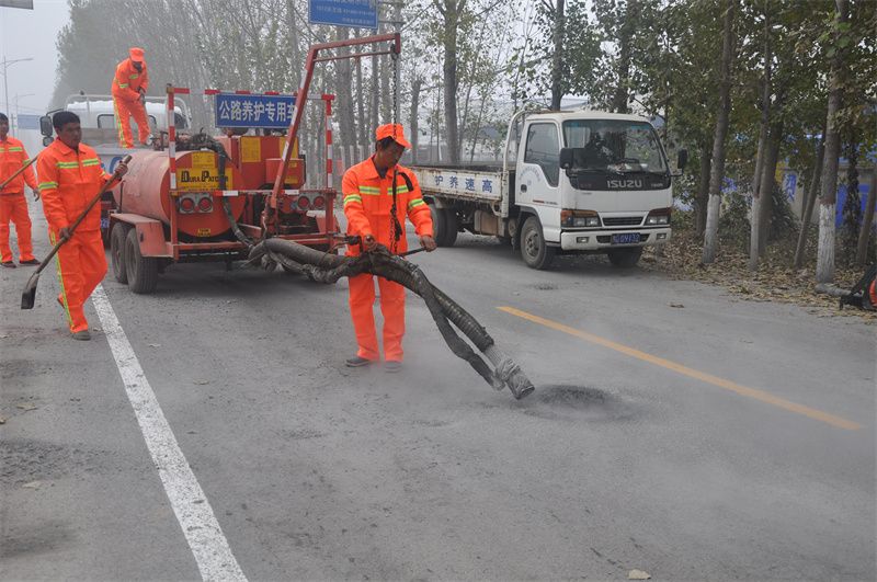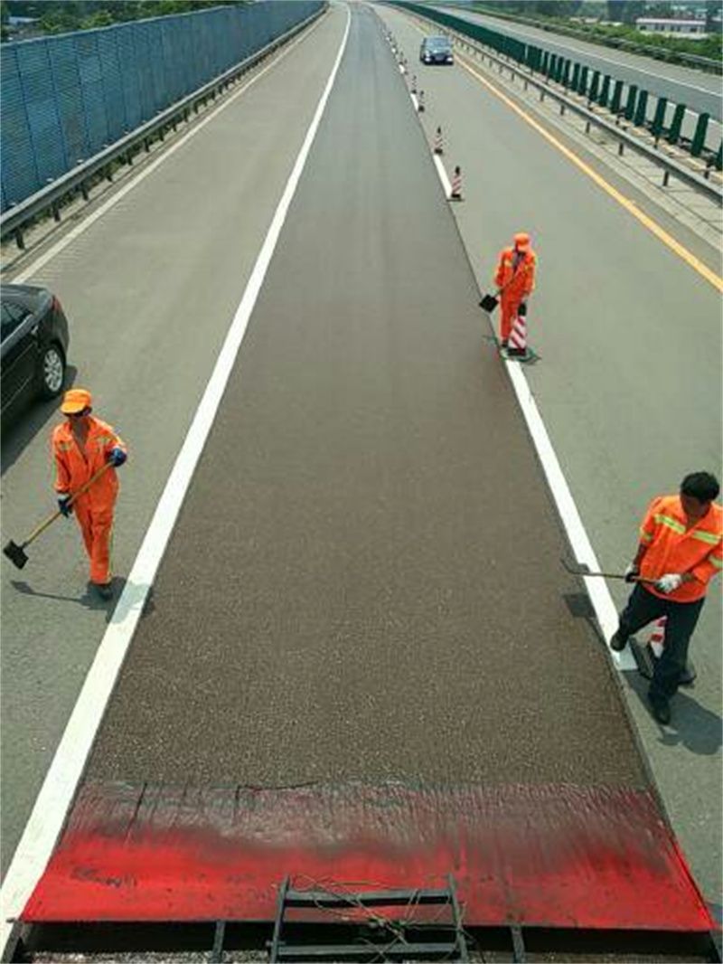 應(yīng)用范圍:     砂封層主要應(yīng)用于高速公路,一、二級公路瀝青路面的預(yù)防性養(yǎng)護(hù)。可以進(jìn)行美化路緣、路肩施工。經(jīng)過砂封層施工后可以改變新舊路面的外觀及顏色。施工說明:砂封層是一種層鋪的施工工藝。采用同步碎石封層設(shè)備將聚合物改性粘結(jié)材料和骨料金剛砂同時(shí)撒布施工的一種施工工藝。粘結(jié)材料應(yīng)選擇高濃高粘且具有一定滲透型和還原性。骨料需選擇耐磨的金剛砂。技術(shù)特點(diǎn):(1)常溫施工,無需加熱,節(jié)能環(huán)保。(2)用來解決瀝青路表面瀝青老化出現(xiàn)的貧油狀況。(3)解決原路面出現(xiàn)的麻面、松散掉粒、輕微裂縫等現(xiàn)象。(4)新路面可以起到防水的作用。(5)增加路面摩擦系數(shù)和耐磨性能。施工工藝:封閉交通→清理路面→病害處理→砂封層施工→養(yǎng)生→開放交通